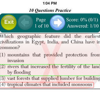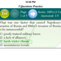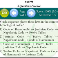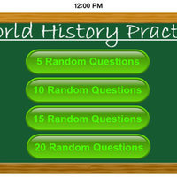 Improve your World History knowledge by answering questions from a large database of World History test prep questions. Each practice lets you extract 5, 10, 15, or 20 random questions from the database. The app keeps your score and shows you the correct answers.