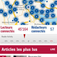 La plaque tournante de votre activité: l’univers «Social View» vous relie en temps réel avec les autres utilisateurs de l’app et avec la rédaction. Des points bleus sur la carte indiquent en temps réel tous les lieux où l’application est consultée, et cela dans le monde entier. Plus bas, vous pouvez voir quel article est le plus lu du moment ou le plus commenté. En allant sous l’évaluation de chaque article, vous prenez connaissance des sujets les plus appréciées et ceux qui le sont beaucoup moins.