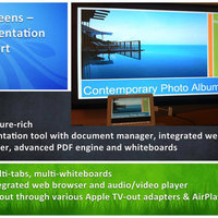 2Screens - Presentation Expert is a feature rich document manager and viewer, complete with integrated web browser and whiteboard. It works seamlessly with TV-out, AirPlay, cloud storage, whiteboard and far more.