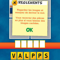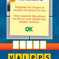 Ce jeu de mot vous est livré avec une différence du jeu original: les images vous sont révélés une par une. Devinez le mot avec le moins d'images et gagner des jetons supplémentaires!