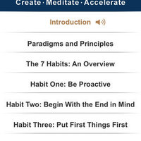 **Accelerated learning of the 7 Habits of Highly Effective People principles through personalized custom meditations.