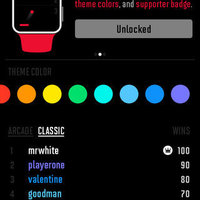 For players who wish to unlock the in-app upgrade (now available for free!), they’ll get the classic playoff mode – one versus one against a stead fast AI opponent in a first to three match. Leaderboards are available here too, tallying your total wins. The in-app upgrade also unlocks ten custom theme colors like red, green, or blue, to match the style and color of your Apple Watch band. As a bonus we’ll also present you with a Supporter Badge on our leaderboards as a thank you for supporting the games development.