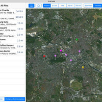 • Lists of Pins order by distance to map center or current location (*).