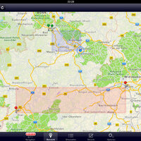 Now you can get started: Go to the first tab (navigation) and enter a destination address or choose an existing location from another view. The corresponding route will be calculated and displayed to you. Do not get distracted and concentrate yourself upon your drive! The map view will scroll with your changing location automatically. Route directions will be generated each time as well as traffic information shown on the map such as crowded highways.
