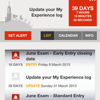 - A countdown to key dates relating to exams and recording experience, with the ability to set alerts for these events and synchronise them with your calendar.
