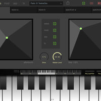 • Real time parameter control using two X/Y touch pads, the tilt sensors of the iPad and MIDI Controllers.