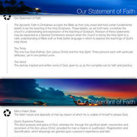 To be a united church working as a family towards the transformation of mankind to the glory of God with the church’s presence and structures in every community throughout Zimbabwe. To be the biggest and leading Pentecostal church in Zimbabwe, a prayerful, Spirit filled and well equipped, inspired to construct, restore and reach out as we wait in readiness for the Lord’s Second Advent.
