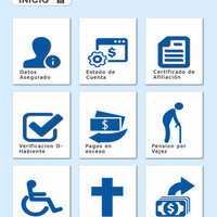 (Datos del Asegurado, Cambio de PIN, Consulta de Estados de Cuenta, Certificado de Asegurado, Consulta de Derecho Habientes, Consulta de Pagos en Exceso, Consulta de Pensiones)