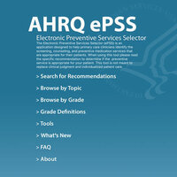 The ePSS application was developed to assist primary care clinicians identify the screening, counseling, and preventive medication services that are appropriate for their patients. The ePSS information is based on the current recommendations of the U.S. Preventive Services Task Force (USPSTF) and can be searched by specific patient characteristics, such as age, sex, and selected behavioral risk factors. When using this tool please read the specific recommendation to determine if the preventive service is appropriate for your patient. This tool is not meant to replace clinical judgment and individualized patient care. The ePSS is available as a web application and mobile applications.