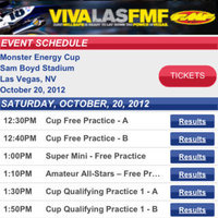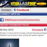 The AMA Supercross App features Live Timing & Scoring of all on-track activity, as well as event and season schedules, session results and rider point standings. Rider headshots, bio information and full session laptime data for all riders can be accessed in any active 450SX and 250SX session by clicking on a rider's name on the Live Timing page. The Connect screen features an integrated feed from the official AMA Supercross social media page on Facebook.