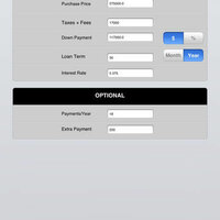 3. Down payment (optional) - can be specified as % of principle or as a dollar amount