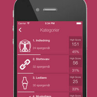 Kategorier og spørgsmål tager udgangspunkt i Bevægeapparatets anatomi 13. udgave af Finn Bojsen Møller m.fl. For hver quiz kan du se en status over dine besvarelser af netop denne quiz og du kan dyste mod dine venner og læsemakker via GameCenter med funktionen 1 mod 1.