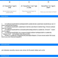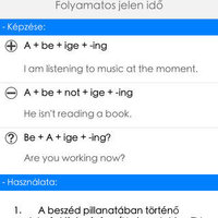 - Az alkalmazásban megtalálható az angol nyelv igeidői részletesen elmagyarázva: