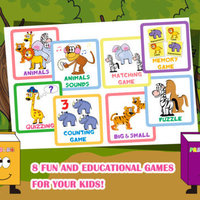 Animals Toddler Preschool is a fun game for children, specifically designed to improve children's learning and memory skills and in the same time getting to know the animals world.It is a collection of 8 exciting educational games for your preschool(18 months and up).8 ways to play: Animals Recognition,Animals Sound, Matching Game,Memory Game,Quizzing,Counting Game,Big&Small and Puzzle Game.