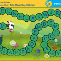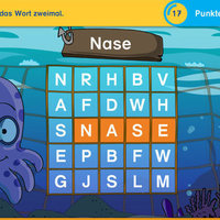 In einem Buchstabenfeld soll möglichst schnell das gesuchte Wort zweimal wiedergefunden werden.