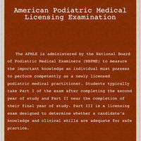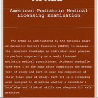 The American Podiatric Medical Licensing Examinations (APMLE) are qualifying tests currently recognized or utilized by legal agencies governing the practice of podiatric medicine in the states, provinces, and federal agencies listed in the Candidate Bulletin.