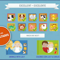 Gráficos muy bonitos y animaciones asi como también colores dinámicos mantendrán la atención de su hijo o hija mientras interactúa con Lucy y Carlos para elegir los bloques que corresponden a las palabras en Inglés y Español.