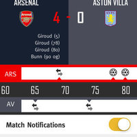 • Push notifications for goals, starting XI, half-time and full-time scores, and more
