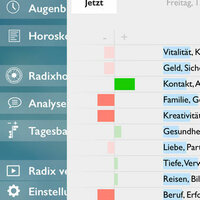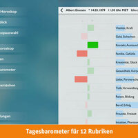 • Tagesbarometer mit Kurzanalyse zu zwölf Themen wie Gesundheit, Familie, Liebe, Beruf, Geld, Kreativität oder Freundschaft
