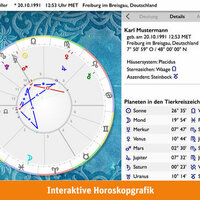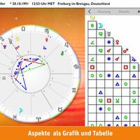 • Horoskope mit Radix-Grafik, übersichtlicher Detailinformation und Aspektarium