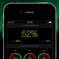 The app also provides predicted and observed Kp index, solar wind data directly from DSCOVR, such as solar wind speed and magnetic field (Bz and Bt), and graphs with recent data to help you predict auroral activity.
