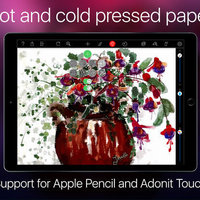 Auryn Ink (pronounced "orin") is the only true watercoloring app on iOs. It is a "no mess watercolor mobile studio" that creates authentic watercolor simulation. It allows for wet on wet, wet on dry and glazing effects. Based on the tilt of your device, colors run down the surface, bleed and spread out to create darker edges just like real watercolor.