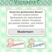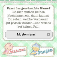 - Passt der Nachname: Mit dieser tollen Funktion können Sie überprüfen, welche Vornamen gut oder weniger gut zu Ihrem (eingegebenen) Nachnamen passen. So können lustige Kombinationen entstehen, aber auch wichtige Namensentscheidungen getroffen werden.