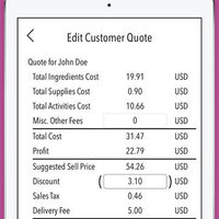 Create a database of recipes and quotes: After creating a customer quote, your ingredients, supplies, and customer data will be saved in the app for future use. Use this saved data to make future quotes even easier to create.