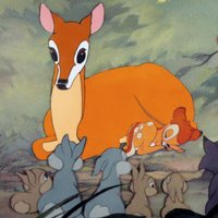 A fawn named Bambi joins his new friends, a young rabbit named Thumper and a skunk kit named Flower in happily exploring the woods. Bambi is captivated with a young doe named Faline, and he learns from his doting mother and his father -- the Great Prince of the Forest -- that besides the delights of the forest, there is danger in open meadows where hunters can see them. Though fear and tragedy touch Bambi's life, another spring brings renewal.