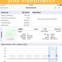 Banktivity for iPad’s investment features manage stocks, bonds, mutual funds, IRAs, 401Ks, CDs and other assets. You can track buys, sells, splits, dividends, options and more; categorize investment transactions; and retrieve quotes from Yahoo! Finance or foreign exchanges.