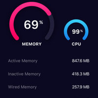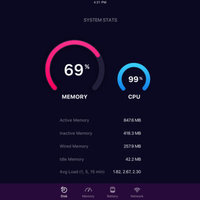 • Real time memory usage monitoring - graphical display of wired, active, inactive, and free memory