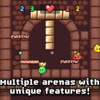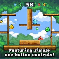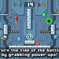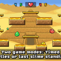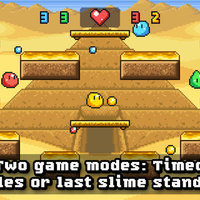 This platformer/shooter game features simple one-button jump controls. Play against the computer or up to four friends in matches. Choose from two different game modes and eight battle arenas. Pick power-ups to turn the tide of the battle! Who will be the last slime standing?