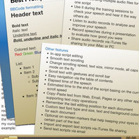 Besides general "must have" features such as text size, colors, smooth scrolling, mirror mode and so on, Best Prompter also has an audio recorder