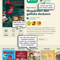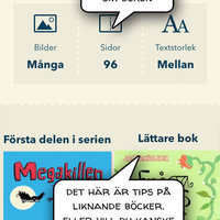 När du startar appen hittar du populära böcker. När du väljer olika kategorier får du tips på sådant som du gillar att läsa. Till exempel spännande böcker, roliga böcker, böcker som handlar om hästar eller om kärlek. Du kan också ställa in så att du får boktips som passar för en viss ålder.