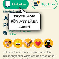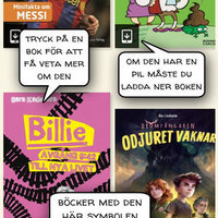 För att läsa mer om en bok klickar du på omslaget. Då kan du läsa vad boken handlar om, se hur tjock den är, om det finns bilder och hur stor texten är. Du kan läsa boken direkt eller ladda ner den. Här finns också tips på lättare eller svårare böcker, nästa bok i serien eller liknande böcker. Det ska vara lätt att hitta en bok som passar!