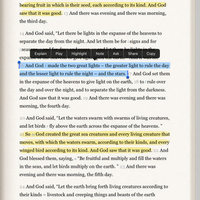 * Highlight an entire verse or on individual words, like a real book
