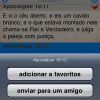 Os versículos poderão ser adicionados a uma lista de versículos favoritos, e facilmente acessados a qualquer momento. Também é possível enviar versículos diretamente do aplicativo para seus amigos e familiares, divulgando as belas mensagens de amor, paz e esperança que somente a palavra de Deus pode oferecer.