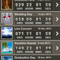 “Big Days of Our Lives Countdown Timer” is an amazing simple way to countdown how many days until, how many hours, minutes, and seconds of a wonderful day such as, wedding day, anniversary, new year, coming holiday, trip, concert, current events, upcoming events and all the big days in your life!