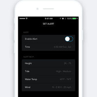 Never miss the perfect session by creating alert. Tell us the conditions that you want (wave height, swell, tide, wind or water temperature), and we’ll alert you when its happening.