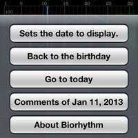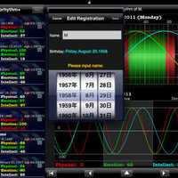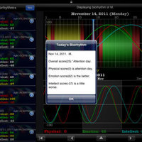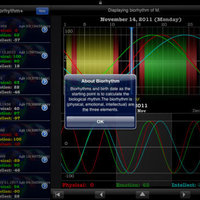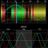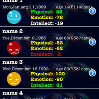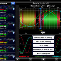 * Three element display of biorhythm at given date (Move by the right and left arrow icon in the lower).