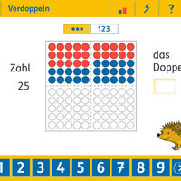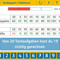 In dieser App können die Kinder selbstständig 10 grundlegende Rechenaufgaben der zweiten Klasse anhand von über 1000 Aufgabenvarianten üben. Beispielsweise: