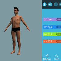 With BMI 3D you will get it. Enter weight and height and see a realistic 3D model of a man or woman. You get even more: with the fat wheel you can adjust the body fat. See how a overweight man becomes a muscleman while the Body Mass Index stays the same.