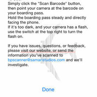 -- Please note that this app does not change a paper boarding pass to a mobile boarding pass. Not all airlines support mobile boarding passes at all stations; please refer to your airline for more information on obtaining mobile boarding passes. This application presents the information encoded in a barcoded boarding pass for your inspection. --