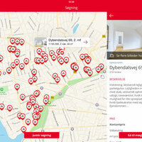 Alle søgninger og boliger kan vises på kort med zoom, der gør det muligt se den geografiske placering.