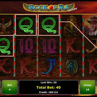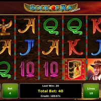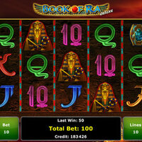 The doors to the mysterious pyramids and the treasures that lie within are open to you in the Book of Ra™ Deluxe slot machine game. With 10 paylines across 5 reels, hyroglphics and relicts will take you down paths long forgotten on the search for those coveted Twists. Find Ra's book to help you complete the puzzle!