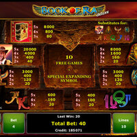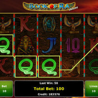 The aim of Book of Ra™ Deluxe is to land a winning combination of 5 identical symbols on one of the paylines, without any other symbols coming in between. Winning combinations run left to right across the paylines. Ra's book substitutes all other symbols and can complete a winning combination. Land 3 'Ra's book' symbols at once and you will be given 10 free games!