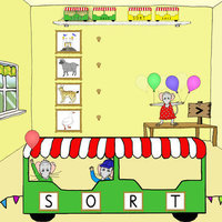 Här får barnen öva att lyssna och identifiera första ljudet utan koppling till bokstav. I varje omgång visas ett föremål/djur. Rösten uttalar ordet. Därefter presenteras fler föremål/djur som ska sorteras efter begynnelseljudet, som hör till den aktuella omgången.