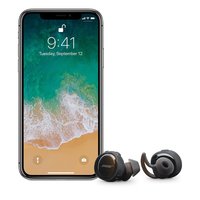 When you’re done working out, the magnetized case also keeps the earbuds securely in place while they recharge. Off a single charge, the earbuds can play for up to five hours—long enough to power you through almost any workout. A fully charged case gives you two additional earbud charges—or up to 10 hours of battery life. Voice prompts talk you through Bluetooth pairing, and you also can use these headphones to take calls and access Siri on your iPhone.