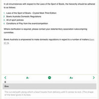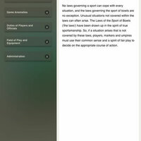 There are definitions of all bowls terms used in the laws to ensure clarity for all players. You’ll also find handy text increase/decrease buttons which can assist the user where required.