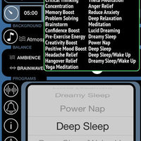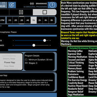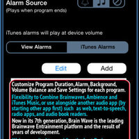 - Save preferred settings, including background audio, iTunes playlist, Alarm settings, and volume for each Brainwave Program.